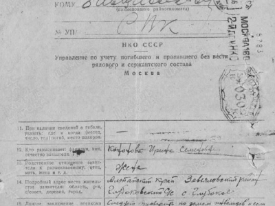 «Красноармеец Кононов был обнаружен вместе с тремя неизвестными боевыми товарищами в ходе февральского этапа Бельской поисковой экспедиции, - рассказал командир отряда «Витязь» Дмитрий Федосов, - у солдата сохранился медальон с двойным бланком. Записи в документе угасли, но специалиста лаборатории «Солдатский медальон» удалось их прочитать. Практически сразу на сайтах «Бессмертного полка» и «Забытый полк» были найдены анкета Федора Владимировича и запрос от его дочери о помощи в установлении судьбы отца, оставленный его дочерью в 2014 году. На протяжении долгих послевоенных лет семья солдата искала его, отправляла запросы в различные инстанции, делая все возможное, чтобы пролить свет на его судьбу. К сожалению, дочь не дождалась возвращения отца… Но есть внуки и правнуки, которые с благодарностью приняли от поисковиков известие о его фронтовой судьбе. Мы благодарим всех, кто помогал нам в этом поиске!».