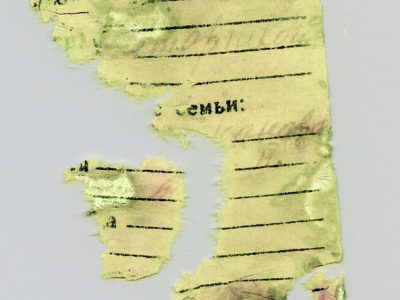 Сначала в теме на стене группы появились две обработки медальона – Александра Дударенка и Михаила Кашликова: полотно бланка со значительными утратами, сохранилось менее половины. Но нам повезло дважды: уцелела правая часть документа, а записи были сделаны карандашом.