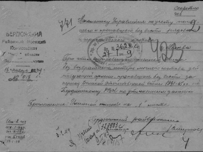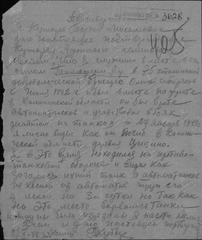 Судьбу красноармейца Тимофея Афанасьевича Кутырева, 1924 года рождения, уроженца деревни Кутырево Бердюжского района Омской (в наши дни – Тюменской) области, установили специалисты лаборатории «Солдатский медальон» Московского городского поискового центра.