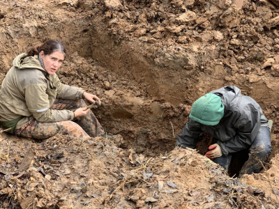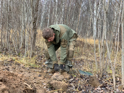 «В ходе экспедиции были эксгумированы останки одиннадцати бойцов, - рассказал командир отряда Илья Подколзин, - именно сейчас, в осенний период, появилась возможность полноценно работать на объекте. Здесь мы столкнулись с самым сложным для проведения земляных работ типом почвы – красной глиной. Летом ее невозможно пробить щупом, что существенно осложняет поиск госпитальных захоронений. Теперь глина напиталась влагой, стала значительно мягче».