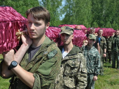 Проститься со своими героями приехали множество семей из разных регионов России - Курск, Пермь, Ижевск, Санкт-Петербург, Москва, Пензенская, Нижегородская и Тверская области, республика Чувашия. Помимо России, на захоронение прилетели родственники из Белоруссии и Казахстана.