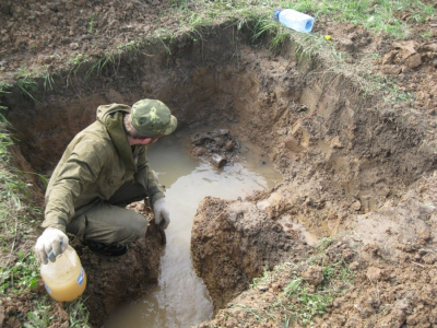 Весной всегда трудновато работать из-за воды. Зато, только весной небо кажется особенно легким и прозрачным. Отряд поехал копать на майские праздники - нашли двух бойцов. С именами опять не повезло. Работу не фотографировали. Район - Ржевский.