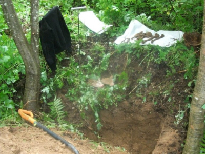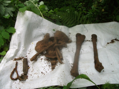 Но совершенно неожиданно дождь прекратился. Небо прояснилось и показалось приветливое солнышко. Расстроенные неудачей, мы решили взять реванш - впятером забились в машину и поехали к траншее, с которой взяли немало бойцом. Приехав на место выбрали один из невыхоженных аппендиксов и принялись по нему работать. Уже через полчаса Андрис нашел бойца. При бойце - гильза от ПТР-а, винтовочный ключ.