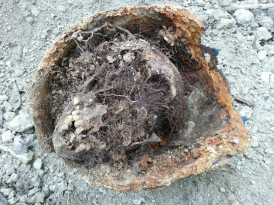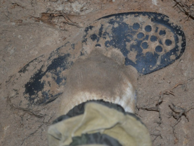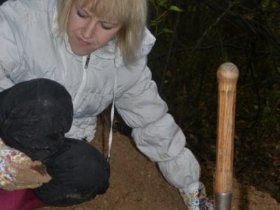 Второй Бросок прошел по следам первого. Два дня отряд большой командой работал в том же леске, что и на прошлых выходных. Выезд был "мокрым", казалось, на протяжении двух дней дождь не утихал ни минуты. Все было напитано влагой. Правда, сухая иссохшая за лето земля не спешила ее принять. Поэтому копать было по-прежнему легко и удобно. В этот раз мы больше часа бродили по знакомому лесу - никому не удавалось зацепиться. А потом у всех как-то одновременно пошла работа. Сначала Женя Нечаев "зацепил" двух солдат в воронке на грнице леса и поля. Потом Андрей Фолманис нашел верхового бойца на бруствере сомнительной траншеи.