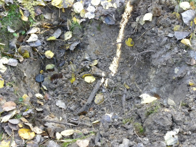 Пока мы доехали до позиций и пообедали, прошла пара часов. Уже начинало темнеть, и работать нужно было четко и быстро. Нам помогло хорошее знание места – был быстро выделен участок траншеи, не охваченный вниманием во время предыдущих выездов. Практически сразу были обнаружены разрозненные останки советского бойца. Остаток светового дня был потрачен на его эксгумацию. Останки солдата неравномерно залегали в траншее на площади более чем два квадратных метра. В соседних раскопах также были обнаружены фрагменты человеческих останков – мелкие кости скелета. С наступлением темноты мы свернули работу и спустились с высоты к машинам, поужинали вкусным куриным супчиком и двинулись в обратный путь, довольные вполне достойным результатом одного рабочего дня.