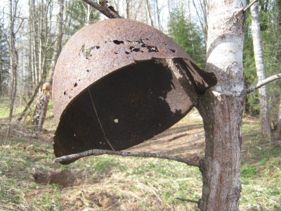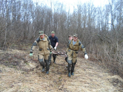 Для поискового музея "Вехи войны" был эвакуирован фрагмент брони от башни советского танка Т-26.