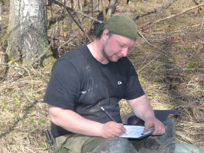 Также хочется отметить еще одно значимое новшевство Вахты - поиск стал перемещаться из леса на поле и на высотки с молодой непролазной березовой порослью. Владимир Башкин (ПО "Высота") осваивал новый глубинный прибор, что принесло хороший результат - солдаты были найдены в запаханном поле на ровном месте. "Рамка" в такой работе крайне выгодно отличается от классического ТМ-808 значительно большей площадью охвата.