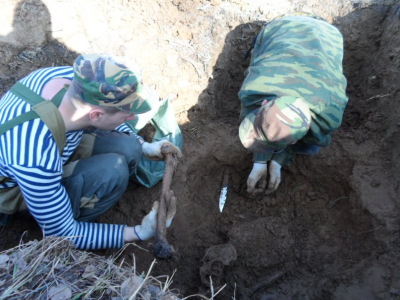 Всего за Вахту было обнаружено и эксгумировано 36 бойцов РККА, 2 медальона удалось прочитать на месте. Наш отряд нашел 6 бойцов РККА, был один медальон, который требовал экспертизы. Участвовало в Вахте от "Витязя" 10 человек.