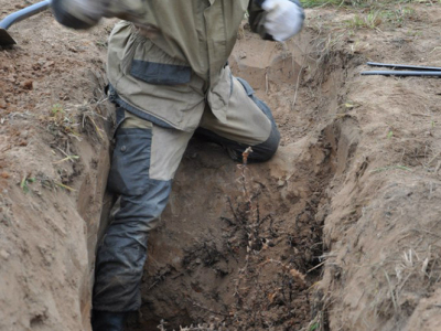 Невскрытые участки траншеи обследовались особенно тщательно при помощи щупов и металлодетекторов, при малейшем подозрении на провал в слое грунта у дна траншеи выкапывались шурфы, стараясь, таким образом, свести к минимуму вариант ошибки и не «пропустить» бойца. Во время первого выезда был зачищен значительный участок местности, в траншее удалось найти командира РККА: при погибшем было обнаружено портмоне, к сожалению, пустое, что не позволило установить его личность. Во время следующего выезда были найдены трое красноармейцев, двое из них имели при себе каски и другое снаряжение, в том числе – подписанную ложку с инициалами «РЛИ». Третий выезд завершился обнаружением останков двоих военнослужащих в соседней траншее, павшие также были в касках, но без снаряжения. Носителей информации, позволяющих установить личности бойцов, обнаружено не было. Также в ходе третьего выезда была частично обследована немецкая огневая точка – после окончания активных боевых действий в нее были сброшены артиллерийские гильзы, колючая проволока и прочее военное железо, после чего ее засыпали землей. Колючая проволока осложняла процесс раскопок – ее приходилось аккуратно расчищать и перекусывать специальными ножницами, а то и вовсе вырывать при помощи троса целыми клубками.