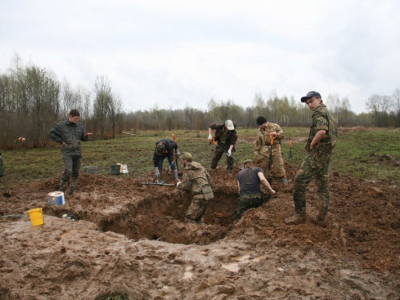 «В поисковом сообществе существуют разные точки зрения о том, как именно должна строиться работа с молодым пополнением, - говорит Юрис Фолманис, - нам кажется, что наибольшего успеха можно добиться именно в смешанном коллективе, когда на одного новичка приходится несколько опытных поисковиков. Основной принцип в работе такого коллектива можно сформулировать очень просто – «Делай, как я!», то есть навыки полевой работы перенимаются не на словах, а на деле, когда старший на практике показывает младшему, как и где нужно искать, как пользоваться щупом и металлодетектором, как правильно организовать и провести эксгумацию». Особенно актуальным оказался такой подход в нынешней экспедиции: основные работы велись на запаханном поле урочища, расположенного рядом с оврагом, вдоль которого проходил старый деревенский «большак», с которым частично совпадает и современная дорога. По обе стороны «большака» и располагались деревенские дома, с одной стороны уходящие дворами в овраг, а с другой - в поле. По всей видимости, еще до начала активных боевых действий в ноябре-декабре 1942-ого года деревенские дома и строения были разобраны для строительства фортификационных сооружений: деревня была превращена в мощный опорный пункт с развитой системой траншей, глубоких землянок и блиндажей, часть из которых была впоследствии разрушена артиллерийским огнем противоборствующих сторон. Укрытия, уцелевшие в ходе артобстрелов и бомбежек, могли использоваться после освобождения района от захватчиков и мирными жителями: в некоторых из них было найдено много деревенской утвари, посуда, детская и женская обувь.