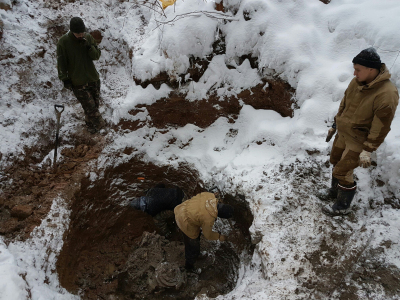 За первые два дня поисковики проложили маршрут от основной дороги к месту проведения раскопок, сделали просеку для проезда тяжелой техники, разбили базовый лагерь, куда перенесли личное снаряжение и оборудование для проведения поисковых и земляных работ. В период с 3 по 6 января вручную было расчищено место падения истребителя, где на глубине трех метров был обнаружен двигатель погибшей машины.
