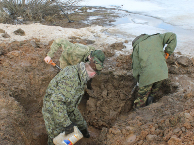 25-26 марта поисковые отряды «Победа», «Витязь» и «Пионер» провели разведывательно-поисковый выезд в районе деревни Полунино Ржевского района Тверской области. При проведении поисковых работ были обнаружены останки 13 военнослужащих РККА, 4 солдатских медальона и подписанный котелок. Имя одного из бойцов удалось установить по бланку медальона: Новиков Иван Петрович, 1918 г.р., уроженец Архангельской области. Личные данные другого солдата установлены частично по самодельной записке: «Н.-Тагил, гор. Выс… Кочетова…». На котелке сохранилась подпись «Кушкенов К.». Другие носители информации переданы специалистам для проведения экспертного исследования.