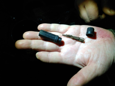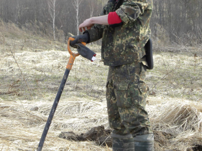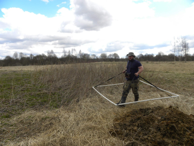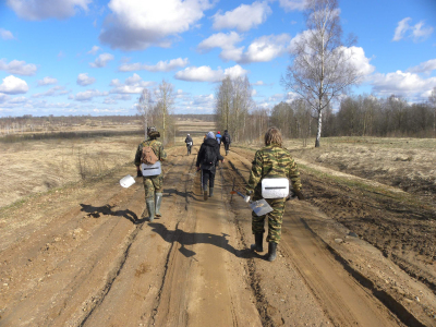 В этом году полевой сезон начался рано – еще до «Вахты» удалось провести несколько разведывательных выездов, наметить новые перспективные направления для поисковых работ. Однако в самом начале экспедиции энтузиазм ее участников был смазан не заладившейся погодой – сначала поднялся продувающий насквозь холодный ветер, а потом и вовсе зарядили дожди, не прекращавшиеся в течение нескольких дней. Тем ни менее, уже в первый день экспедиции удалось обнаружить воронку, образовавшуюся от разрыва реактивного снаряда, с останками советского солдата. Всего в первые дни полевых выходов были найдены и эксгумированы останки пятерых советских военнослужащих, к сожалению, оставшихся неизвестными. В траншее среди военного мусора и солдатского снаряжения была обнаружена сумка с противогазом, в которой боец хранил медальон. Однако капсулу он использовал не по назначению, хранил в ней швейные иголки.