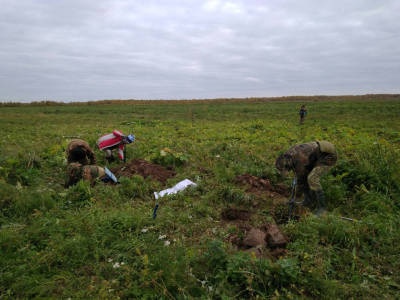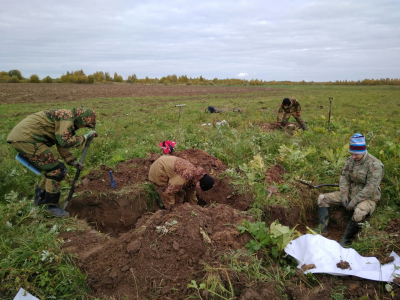В ходе полевых работ обнаружены останки 7 советских военнослужащих: бойцы лежали в воронках, образовавшихся от разрывов минометных мин, и в верхних слоях почвы, из-за чего были повреждены при распашке.
