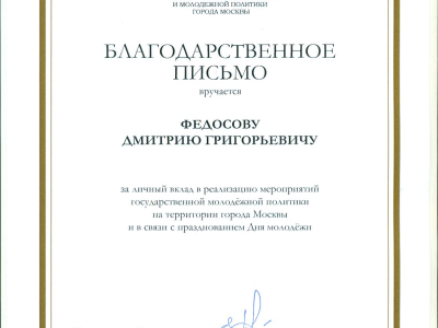 Правительство Москвы высоко оценило работу поисковиков отряда «Витязь» и их большой вклад в реализацию мероприятий государственной молодежной политики на территории города.