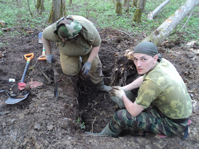 «Вахта Памяти – Весна 2011» проходила с 16 апреля 2011 г. по 30 апреля 2011 г. на территории Ярцевского района Смоленской области. Экспедицию организовал ПО «Высота» им. Дм. Сячина» под руководством И.Н. Подколзина, принимал участие в «Вахте Памяти» и наш коллектив. Членами отряда «Витязь» были обнаружены и подняты из общего числа 14 бойцов РККА: 6 бойцов обнаружены командиром ПО «Витязь» Фолманисом А.Г., 8 бойцов – членом отряда Волковой М.И. Медальонов – 3. Прочитано все 3 медальона. Всего было поднято 85 бойцов РККА. При них обнаружено 22 медальона. Установлено 8 имен. Два медальона переданы на графологическую экспертизу.